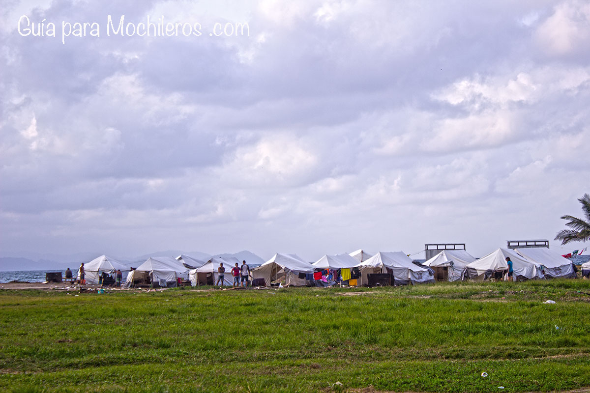 Al lado del mar se ubican las carpas que les brinda el gobierno panameño mientras les impiden salir del puerto, un poco asignadas a veces, y con ciertos problemas sanitarios, pero gratuitas!